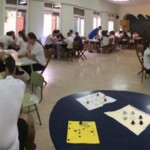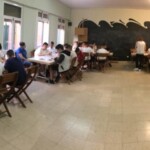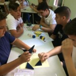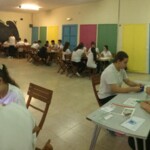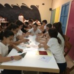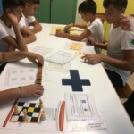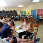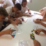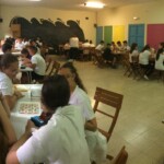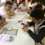 L@s alumn@s de 4º de E.S.O. han recibido a sus compañeros de 6º y de 1º a 3º de Secundaria en el tradicional Salón de Juegos Matemáticos. Han ejercido de maestr@s, ayudándoles a resolver todo tipo de enigmas y juegos matemáticos. ¡Y además, han pasado un rato estupendo!