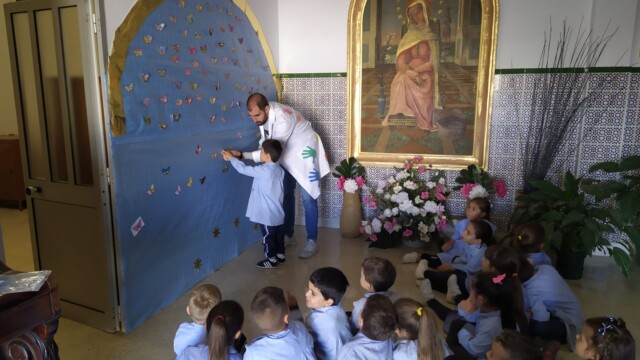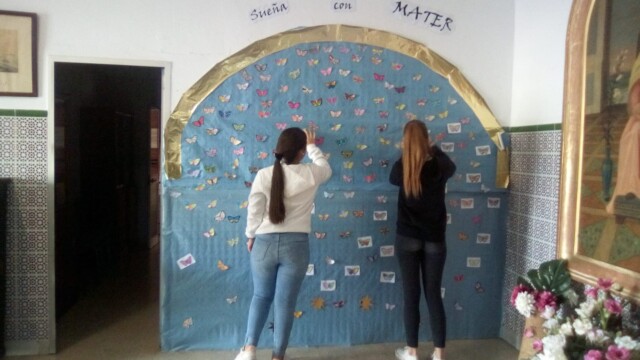 En nuestro Colegio hemos decorado el cielo con mariposas, que simbolizan los sueños que le confiamos a Mater.