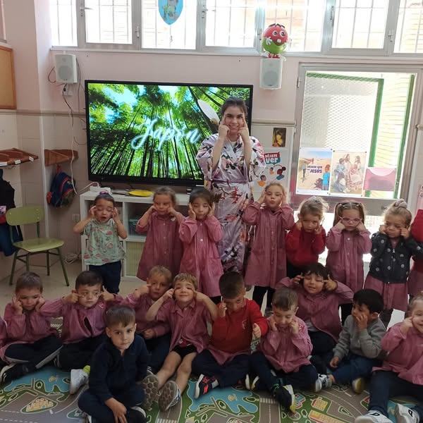 En Infantil 3 años trabajamos el proyecto de Japón y hoy nuestra seño Ángela nos sorprende con unas actividades muy divertidas .