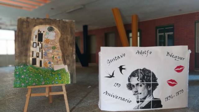 El 20 de abril hemos celebrado el Día Cultural dedicado al escritor sevillano Gustavo Adolfo Bécquer (1836-1870). Han sido dos las razones que nos han llevado a elegirlo. En primer lugar, nos hemos unido a los actos que, desde el año pasado, se han venido celebrando en Sevilla al cumplirse este pasado diciembre el 150 aniversario de su muerte. En segundo lugar, y no menos importante, hemos tomado el último verso de su Rima XXIII («yo no sé qué te diera por un beso») como resumen de lo que todos venimos echando en falta desde hace poco más de un año. Echamos de menos el roce, los abrazos y los besos con nuestros familiares, amigos, alumnos, profesores, etc. Por ello, hemos llenado nuestro colegio y nuestras almas de versos, besos y abrazos; ya que, como dice Bécquer, «el alma que hablar puede con los ojos, también puede besar con la mirada».