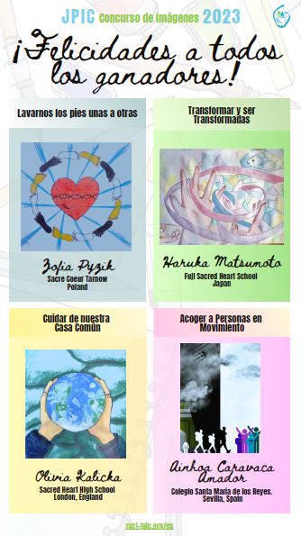 Si ayer os contábamos que tres alumnas de nuestro colegio habían sido seleccionadas como finalistas del concurso internacional JPIC, hoy tenemos la enorme alegría y satisfacción de anunciaros que el cartel diseñado por Ainhoa Caravaca, ha resultado ganador del imperativo «Acoger a personas en movimiento».