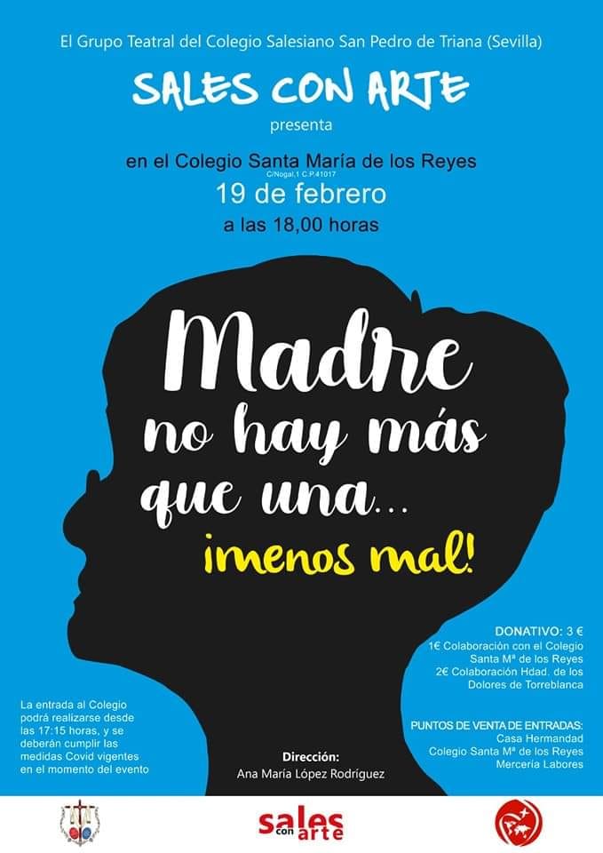 El próximo sábado, tendrá lugar la representación de la obra «¡Madre no hay más que una… Menos mal!» en nuestro Cole, a cargo de la Compañía «Sales con Arte», de los Salesianos Triana.